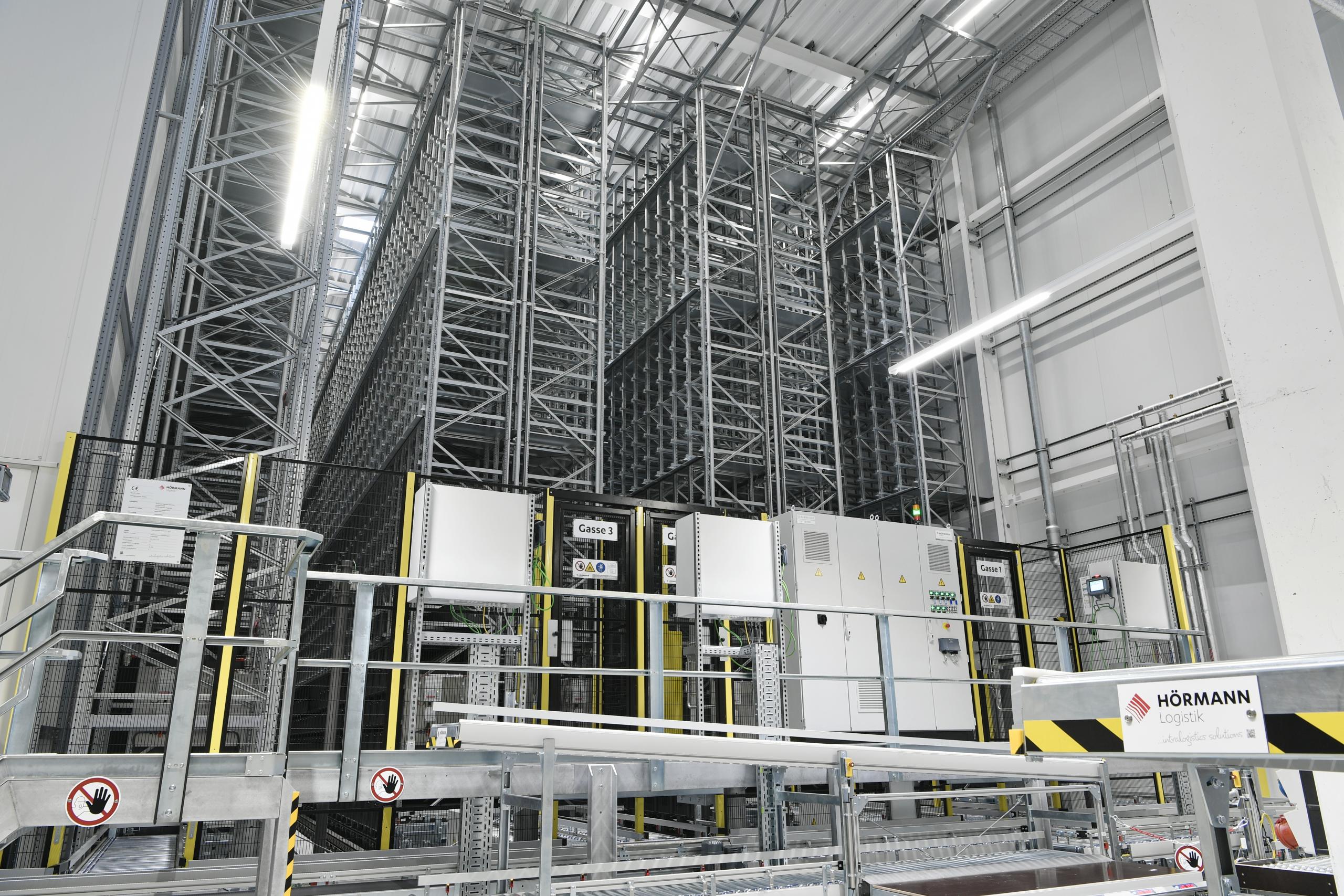 It also features a high-bay warehouse with space for more than 5,600 pallets and a fully automated small parts store with around 32,000 containers. Part of the store is temperature-controlled to enable the storage and transportation of temperature-sensitive goods.