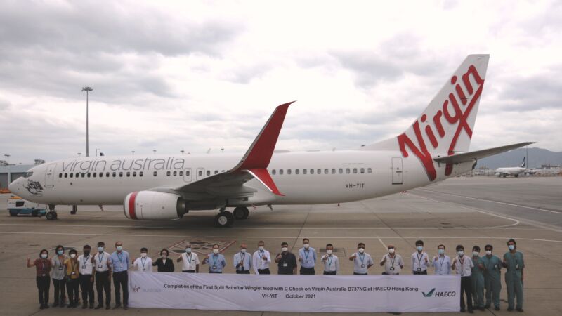 HAECO Hong Kong has completed a winglet modification in tandem with C-Check for a Virgin Australia Boeing 737-800 aircraft.